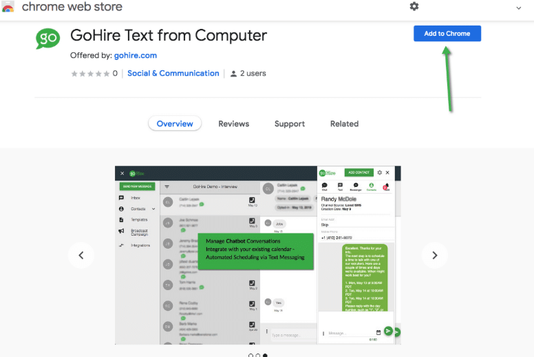 Step 1. Use this link to open the GoHire text recruiting extension on the Chrome Extension store.